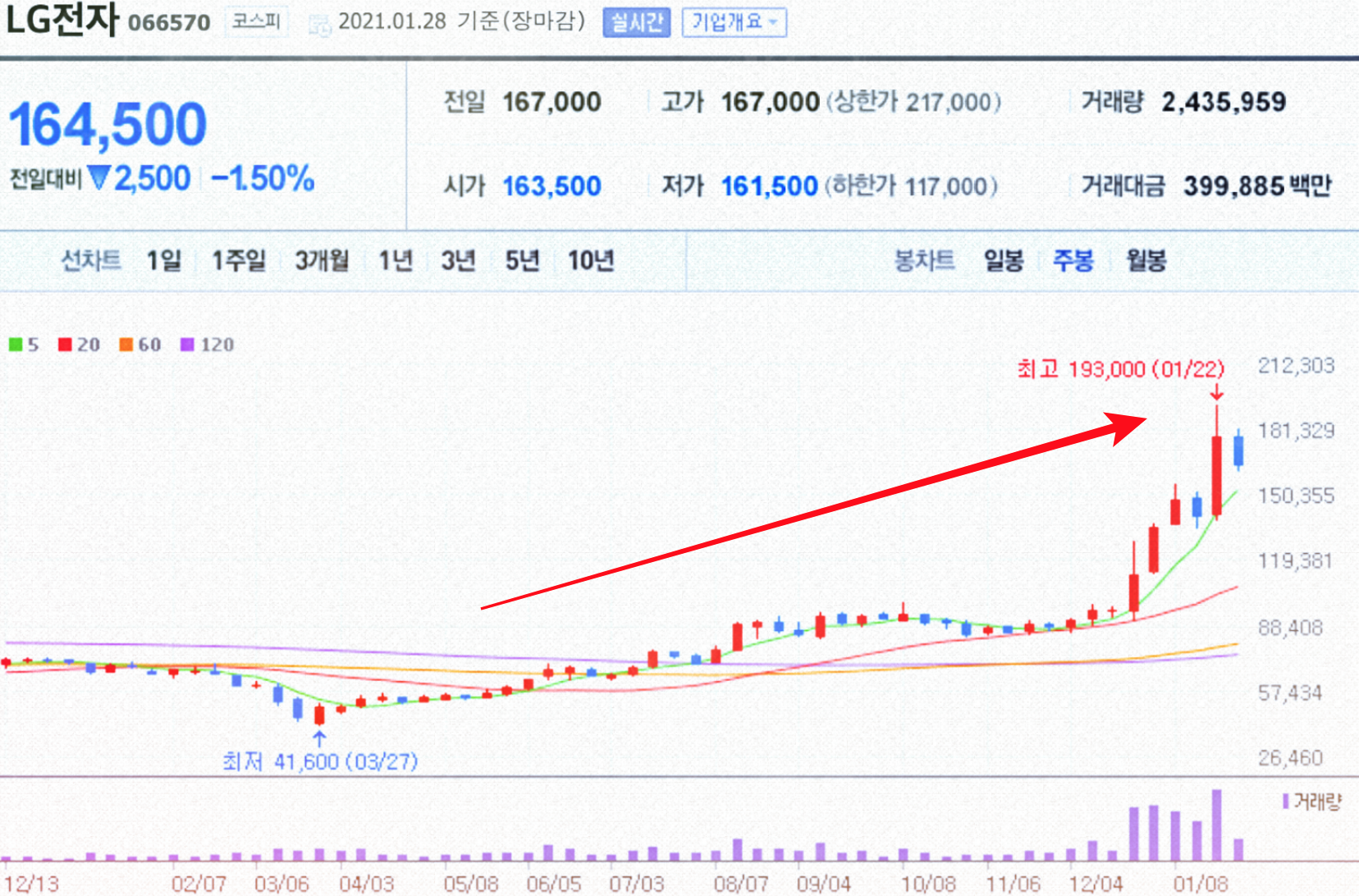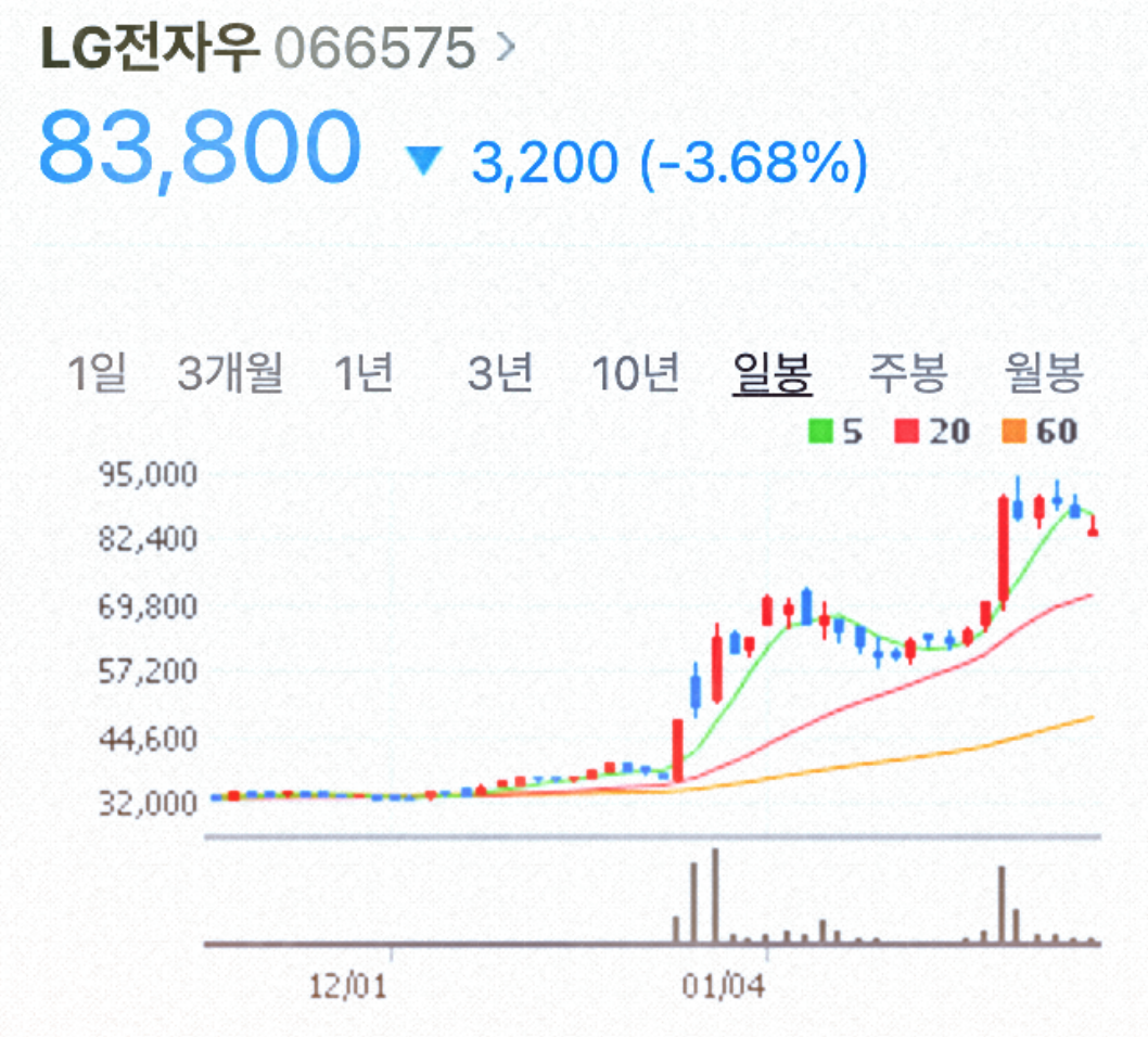 최근 삼성전자가 특별배당을 대폭 지급하기로 해서 이슈가 되었습니다. LG전자는 어떨까요? 최근 LG전자는 그동안 부진했던 핸드폰 사업을 축소한다는 얘기가 있어서 주가가 큰 폭으로 상승했었습니다.